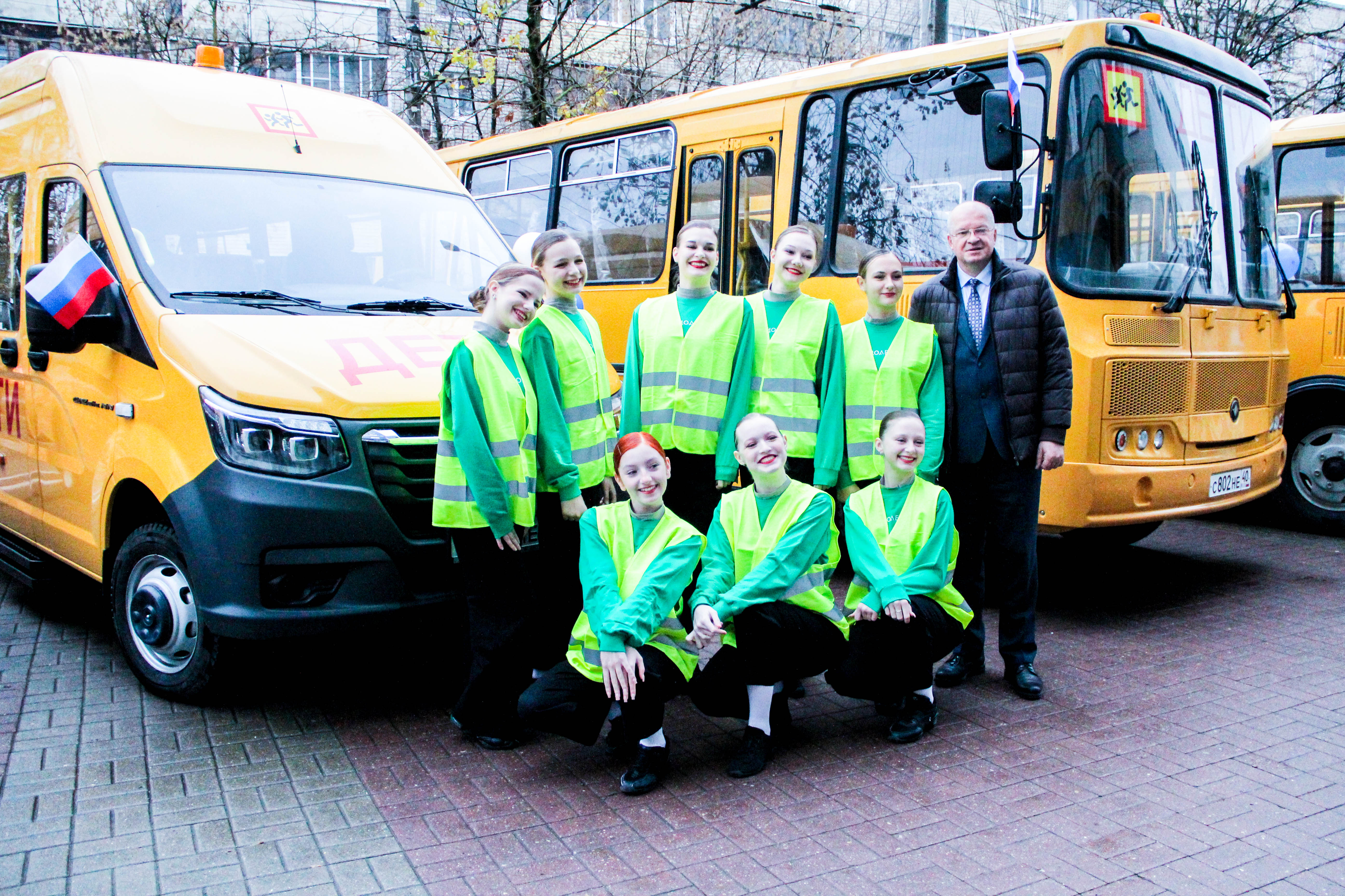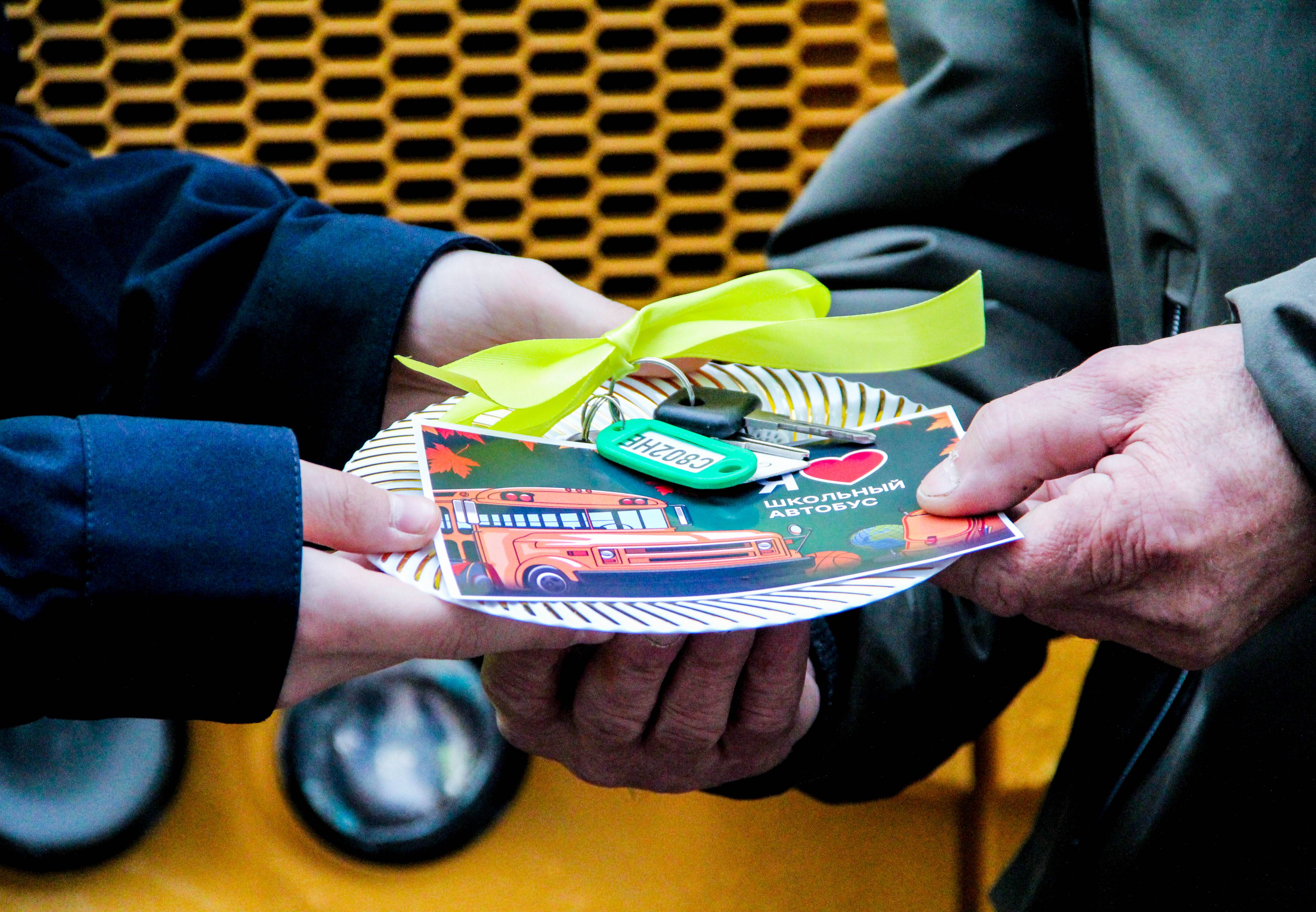 Торжественная церемония вручения ключей от новых школьных автобусов
